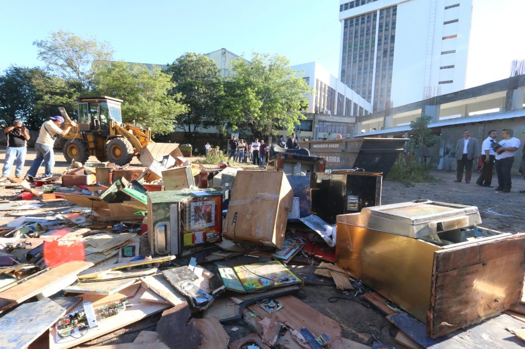 131 máquinas tragamonedas incautadas fueron destruidas por la Municipalidad de Asunción