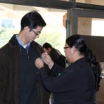 Funcionarios municipales de la Consejería Municipal por los Derechos del Niño, Niña y Adolescente (CODENI) colocan el lazo verde a las personas que llegan hasta la Municipalidad de Asunción, este martes 31 de mayo, «Día Nacional de Lucha contra el Abuso y Explotación Sexual de Niñas, Niños y Adolescentes”.
