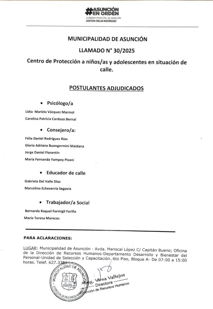 Llamado N.º 30/2025 – CENTRO ABIERTO DE PROTECCIÓN A NIÑOS, NIÑAS Y ADOLESCENTES(NNA) EN SITUACIÓN DE CALLE (ASCPNNA9725) DIRECCIÓN DE CODENI – NIÑEZ Y ADOLESCENCIA