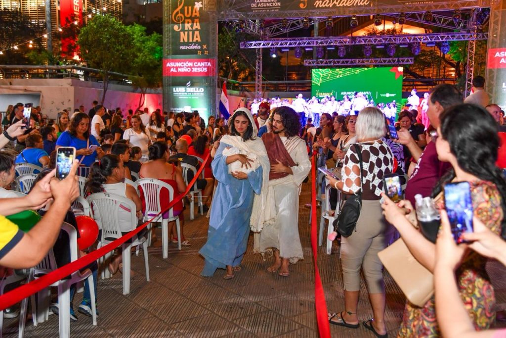 El acto, denominado “Asunción Canta al Niño Jesús”, combinó música coral, expresión artística y espiritualidad, con la presentación del Coro de Niños de Asunción, integrado por más de 60 niños provenientes de distintos barrios de la ciudad. El espectáculo estuvo acompañado por un pesebre viviente, representado por alumnos de la carrera actoral de la Escuela Municipal de Arte Dramático (EMAD), dependiente del Instituto Municipal de Arte (IMA).