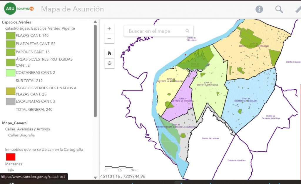 Este nuevo registro fue incorporado al mapa catastral digital de Asunción, donde los espacios verdes se encuentran georreferenciados y disponibles para consulta pública, mediante una capa específica que permite visualizar su ubicación y extensión dentro del territorio urbano.