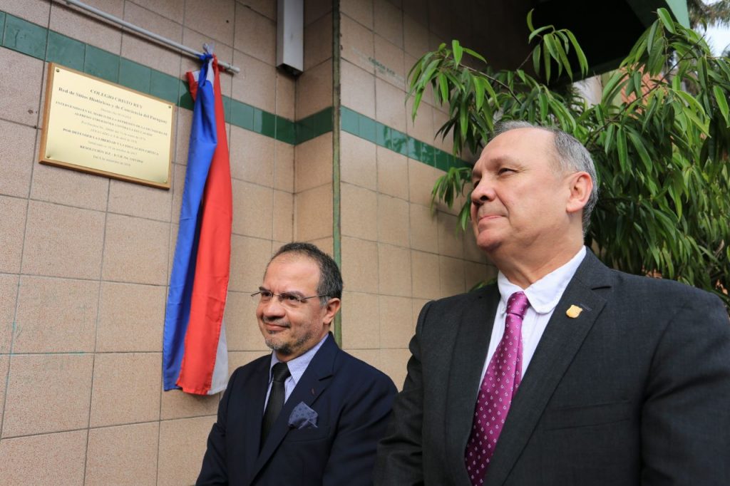 El intendente capitalino Mario Ferreiro participó, a primeras horas de la mañana de este lunes 30 de octubre, del acto de descubrimiento de placa en homenaje al Colegio Cristo Rey, donde se lo reconoce como parte de la Red de Sitios Históricos y de Conciencia del Paraguay.