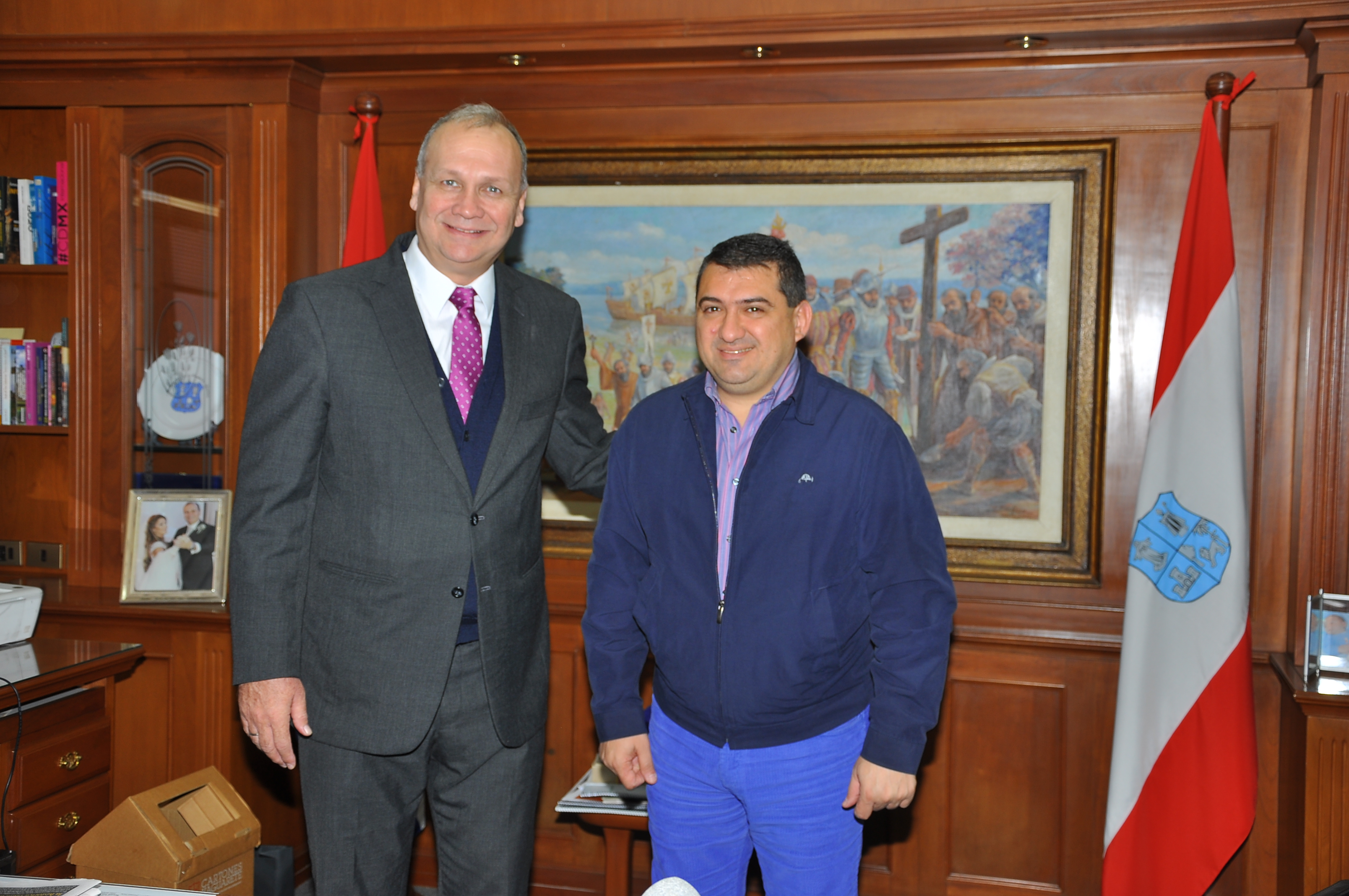 El intendente capitalino Mario Ferreiro recibió a su par de Encarnación, Luis Yd, en la mañana de este viernes 8 de julio en su despacho de la Intendencia de Asunción, ocasión en la cual hablaron sobre temas de interés común relacionados al ordenamiento del tránsito y al medioambiente, entre los más resaltantes.