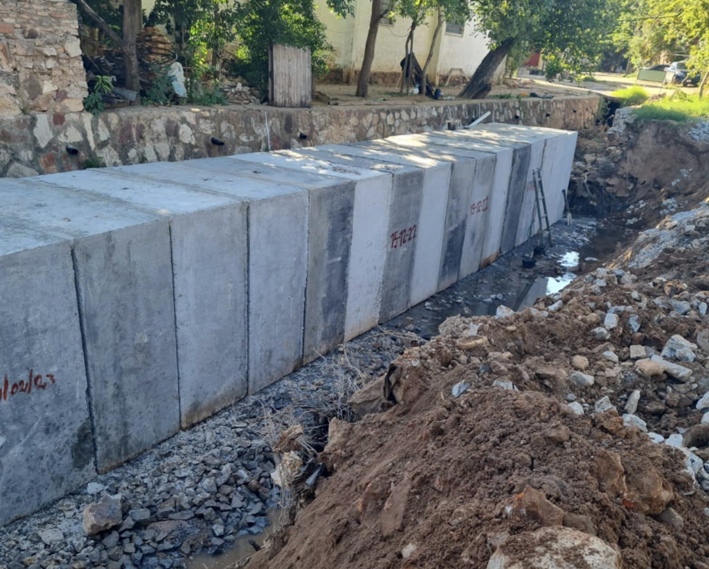 “Seguidamente las excavaciones y colocación de las estructuras entran en las calles Teniente Gregorio Narváez y en Capitán José Domingo Lombardo, con alcantarillas celulares dobles de 2 x 2 metros y luego en Rocío Cabriza, con estructuras dobles de 1,5 x 1,5 metros. Y en el último tramo de Rocío Cabriza, en la salida a Sacramento, el trayecto es simple, con tuberías de 1,5 x 1,5 metros, respectivamente”, detalló.