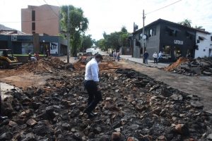 Intendente Rodríguez verificó obras en calles Las Palmeras y Santa Cruz de la Sierra, donde ya se carga el hormigón hidráulico