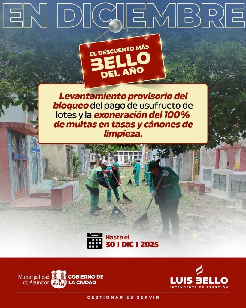 Hasta el 30 del presente mes rige el levantamiento provisorio de la caducidad, para el pago de impuestos, tasas y cánones atrasados por lotes de cementerios, en el marco del período de gracia denominado DICIEMBRE OFF, establecido por el intendente capitalino, Luis Bello.