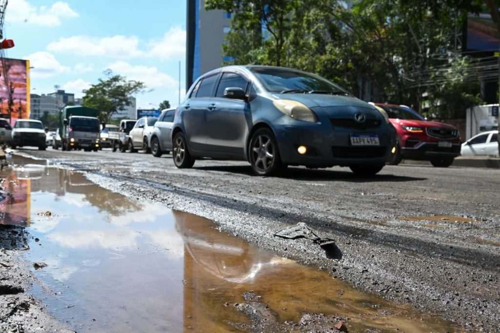 “Estamos verificando y hemos constatado en estos días que hay no solamente roturas de caños de la ESSAP sino también obras que se encuentran en proceso, de donde está saliendo agua sobre la avenida”, señaló.